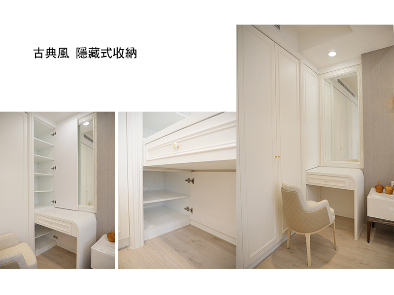 ►其實化妝台側邊也可以做出收納,看似裝飾線板,但其實打開容量可大的呢~